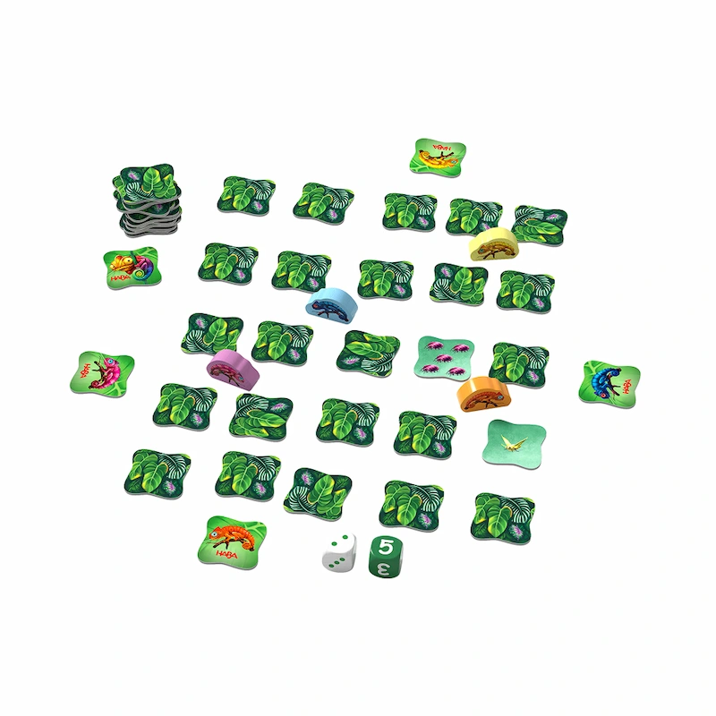 Los jugadores deben descubrir y recordar cuántos insectos se esconden bajo las fichas de jungla para alimentar a su camaleón con la cantidad exacta que necesita. Parece fácil, pero solo quienes se concentren y usen bien la memoria lograrán dar de comer a su camaleón. Con simpáticos camaleones de madera, dados de gran calidad y un tablero resistente, este juego garantiza partidas rápidas de 10 minutos, perfectas para cualquier momento del día.
