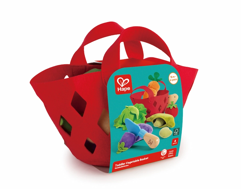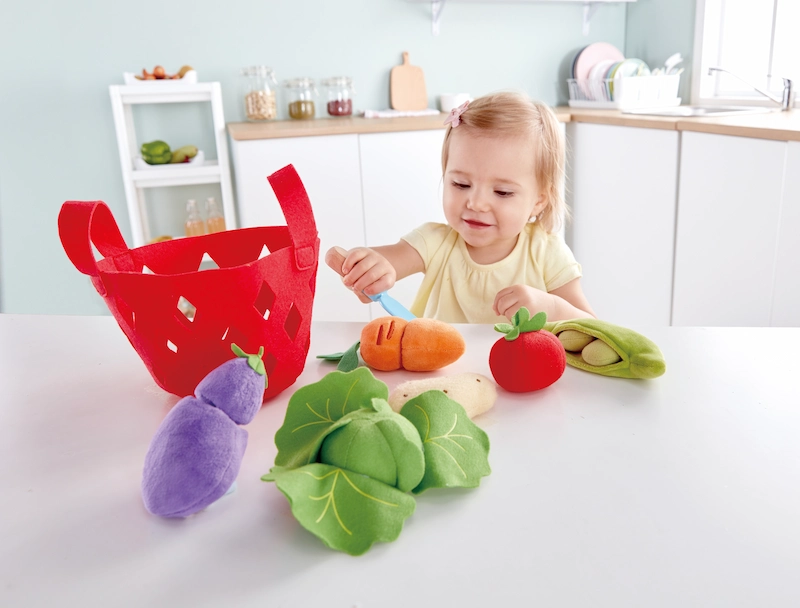 Con la Cesta de Verduras de Tela, los niños podrán explorar la cocina de manera segura y divertida, manipulando verduras de fieltro suaves y realistas.