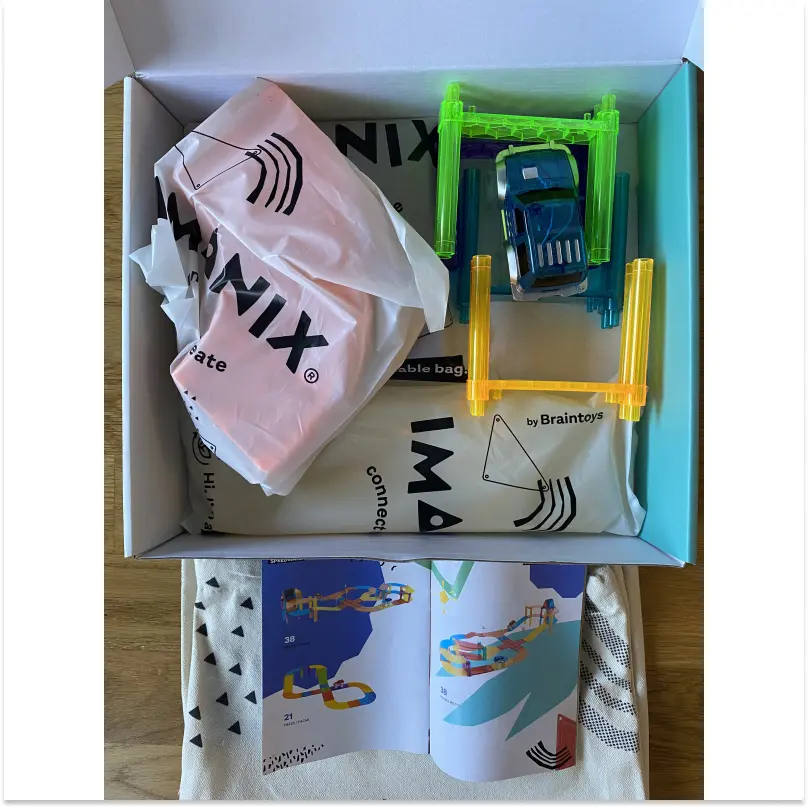 El Imanix Pista de Carreras 22 piezas es un set de construcción magnética pensado para que los más pequeños creen sus primeros circuitos de coches de forma sencilla y divertida.