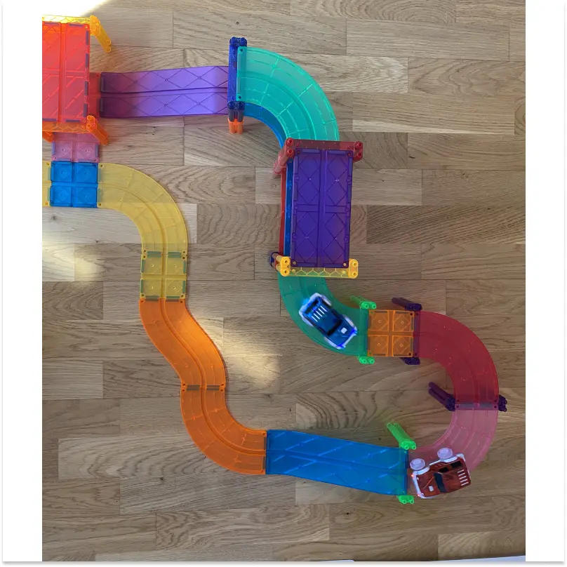 Construcción magnética con circuito de coches para empezar a crear sus primeras pistas y disfrutar viendo cómo cobran vida sin pantallas.