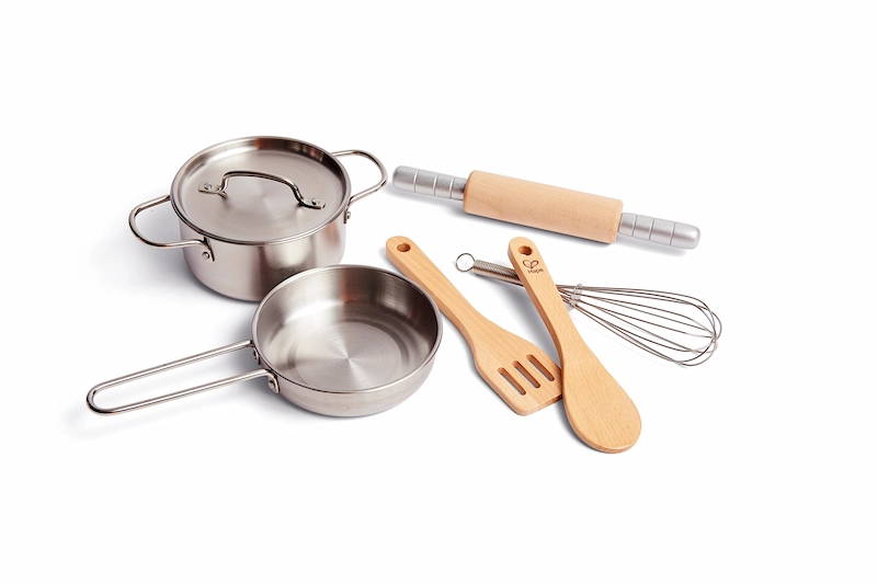 Este juego básico incluye los utensilios esenciales para que los niños experimenten con recetas imaginarias, preparando comidas, decorando platos y jugando a ser chefs profesionales en casa.