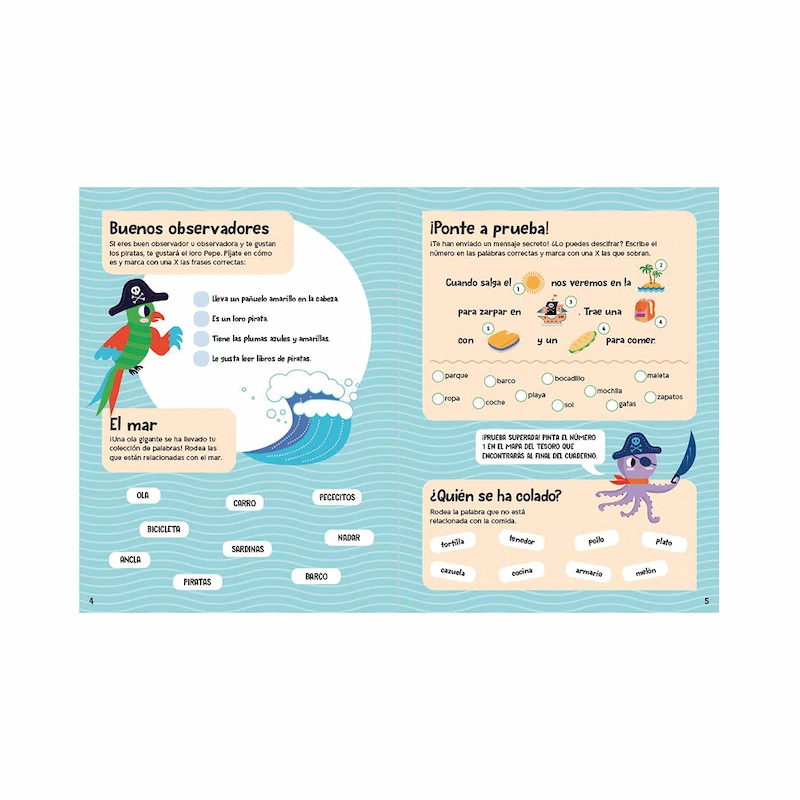 Los temas están adaptados a su edad y a lo que más les gusta, para que cada página sea un nuevo reto que atrape su atención. Ideal tanto para casa como para el cole, este cuaderno se convierte en el compañero perfecto para motivar a los pequeños lectores en sus primeros pasos hacia una lectura autónoma.