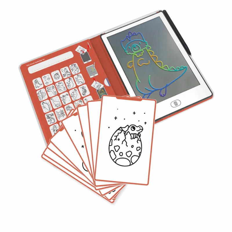La Kidydraw Mini Dinosaurios invita a viajar al Jurásico con una pantalla LCD de 8,2″ y 30 ilustraciones pensadas para calcar siluetas de dinos con facilidad.