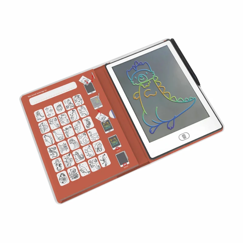 Su formato ligero y compacto es perfecto para llevar a todas partes; el botón de borrado limpia la pantalla en un instante y el bloqueo evita sustos cuando quieren conservar su dibujo.