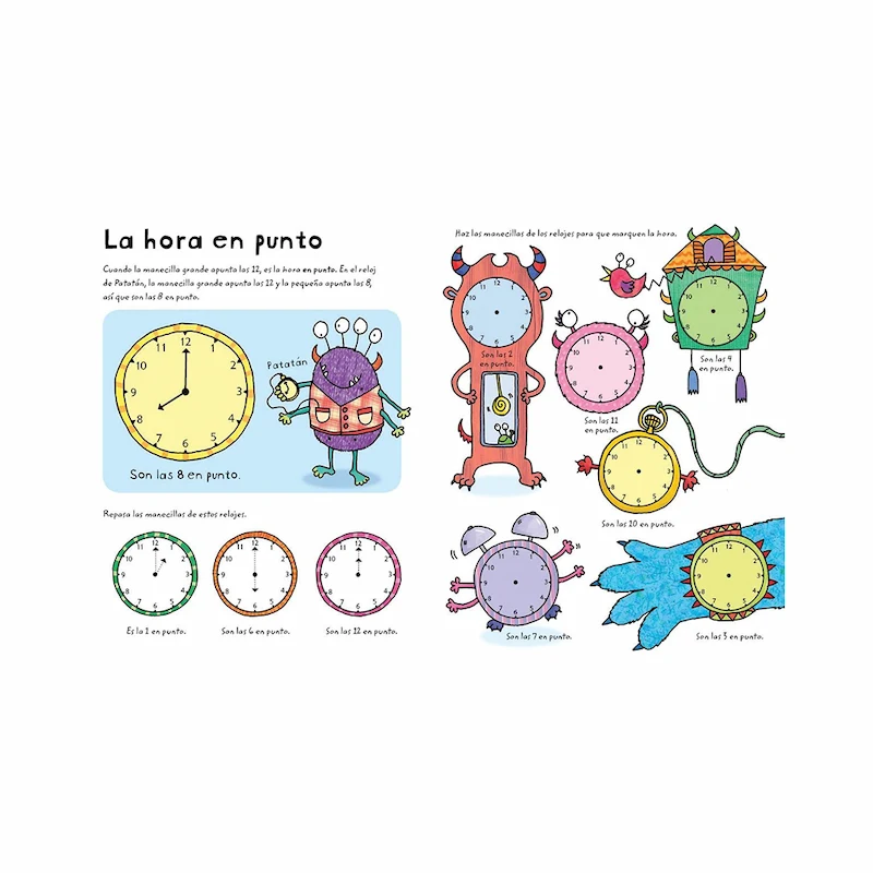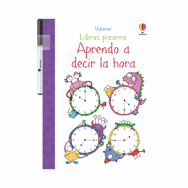 Aprende la hora jugando: practica una y otra vez con este divertido libro pizarra.
