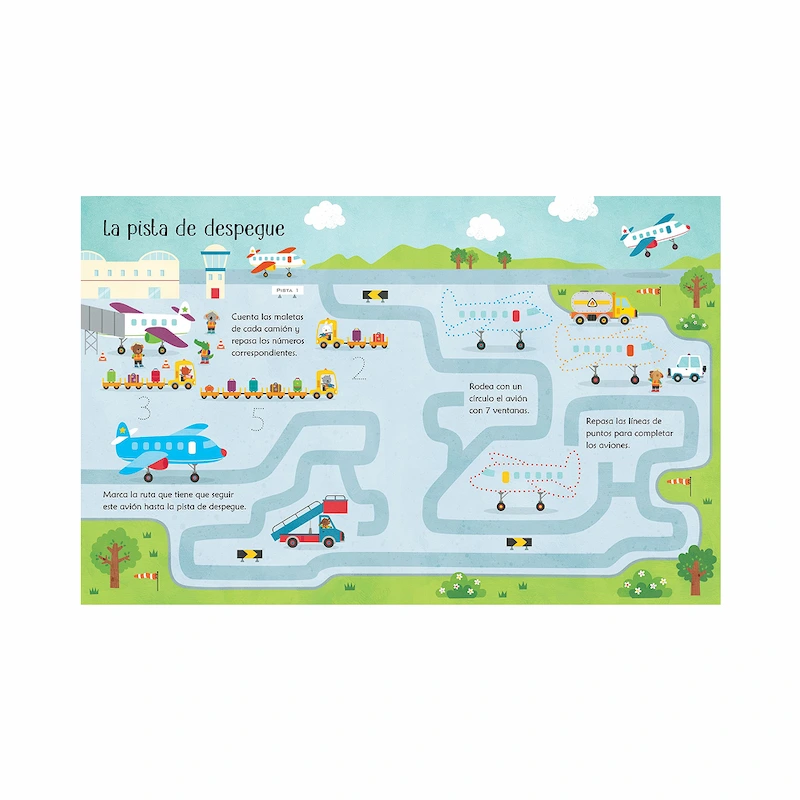Ideal para fomentar la concentración, la motricidad fina y la observación mientras los niños exploran el mundo de los aviones y la vida en el aeropuerto.