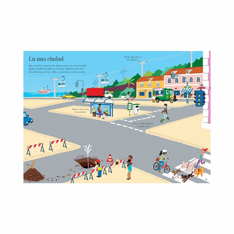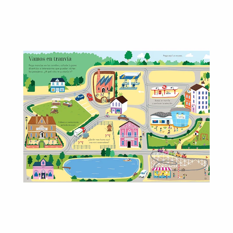 Podrán completar escenas con distintos medios de transporte, como coches, trenes, tranvías, barcos, bicicletas o aviones, y dar vida a cada página colocando pegatinas en su sitio.