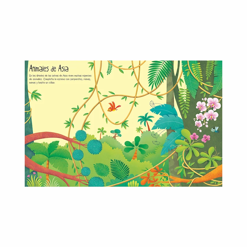 Este libro combina diversión y aprendizaje, fomentando la motricidad fina, la observación y la creatividad, mientras los niños se sumergen en un mundo lleno de aventuras y naturaleza.