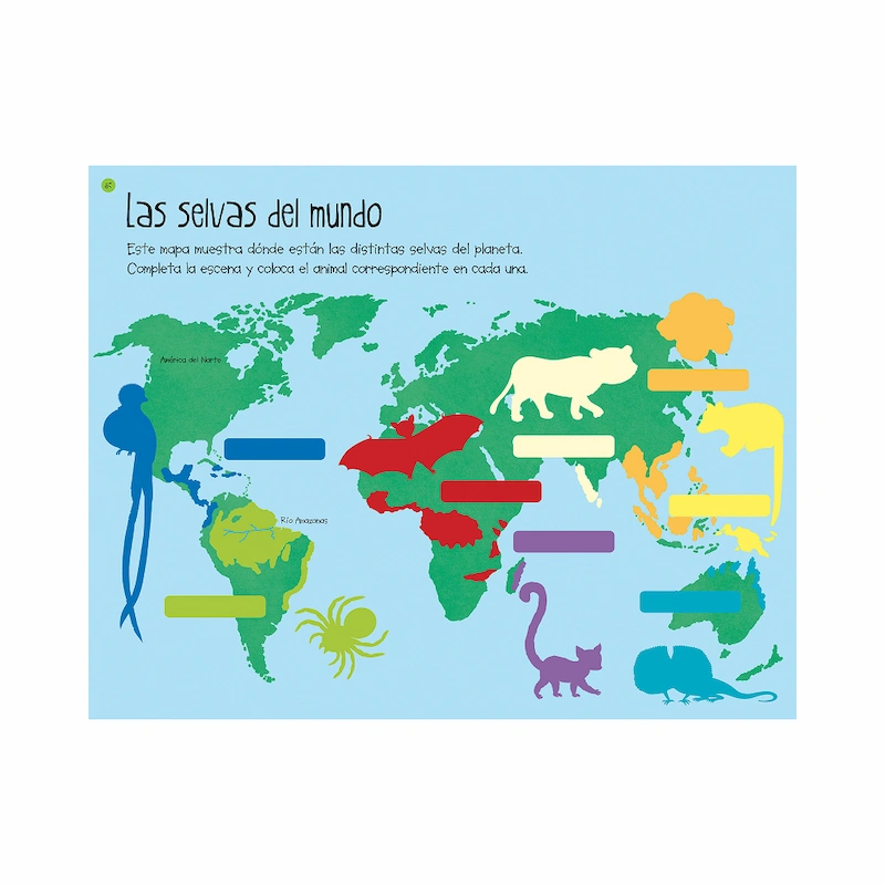 ¡Adéntrate en la selva y da vida a sus animales con más de 150 pegatinas!