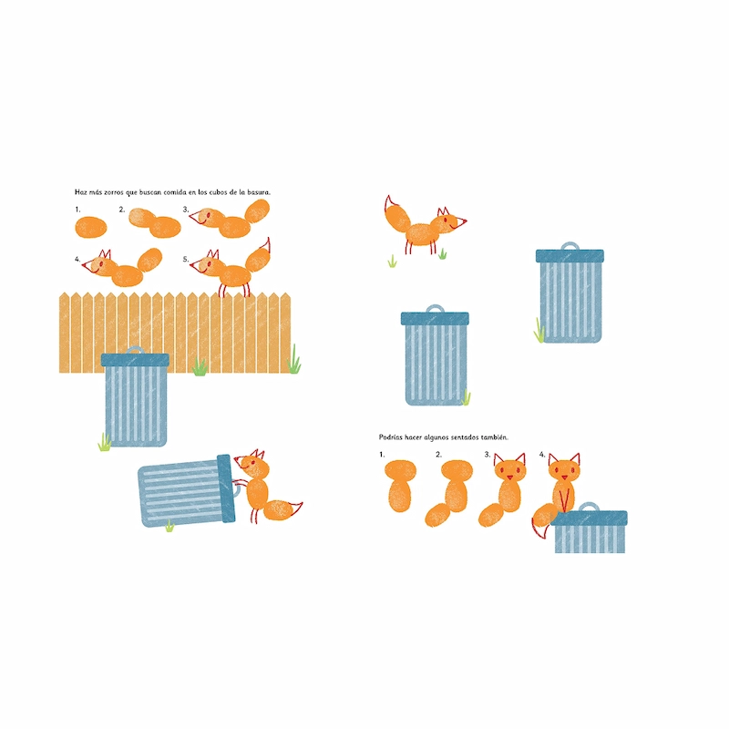 Este divertido libro invita a los niños a explorar la naturaleza usando sus dedos para dibujar flores, arbustos y mariposas, y luego completar los detalles con lápices o rotuladores.