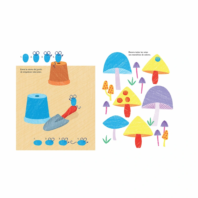 La encuadernación en espiral mantiene el libro completamente plano, facilitando que los pequeños artistas puedan pintar sin problemas.