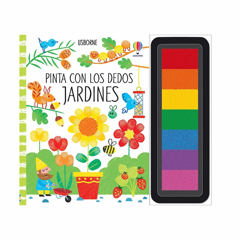 Con almohadillas de tinta de siete colores y muchísimas ideas paso a paso, los niños podrán dar vida a bonitos jardines llenos de flores, caminos y pequeños insectos.