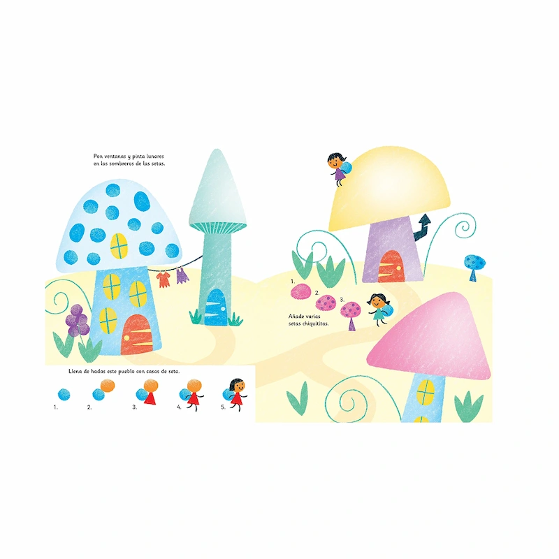 Este libro mágico invita a los niños a crear mundos de cuento simplemente mojando sus deditos en la almohadilla de tinta con siete colores brillantes.