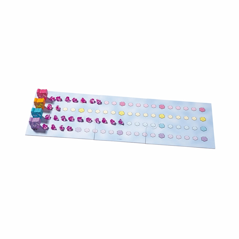 Este juego de recorrido para niños combina la emoción de tirar dados con la estrategia de acumular la mayor cantidad de cristales brillantes. El tablero de juego, con doble cara, incluye un contador de cristales que añade variedad y diversión. Los jugadores avanzan por las nubes, recogen tesoros y compiten por llegar al sol con la mayor colección de gemas.